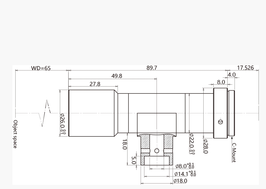 COOLENS 视清 WWH08-65CT 远心镜头 基本参数 支持CCD尺寸(Φmm) 11.0(2/3") 放大倍率β(x) 0.8 物方工作距WD(mm) 65±1 像方F/# 10 物方景深DOF(mm) 1.3 像方畸变(% max) <0.1 物方远心度(° max) <0.1 镜头总长(mm) 89.7 镜头接口 C-Mount 物方分辨率(μm) 8.4 数值孔径 NA 0.04 是否同轴光 是 可变光栏 无 视野范围 (mmxmm) 1/2" (6.4x4.8) 8.0x6.0 1/1.8" (7.13x5.37) 8.9x6.7 2/3" (8.8x6.6) 手机/微信:13682357734 电话:0755-84690029 QQ: 2844337877 邮箱:2844337877@qq.com...