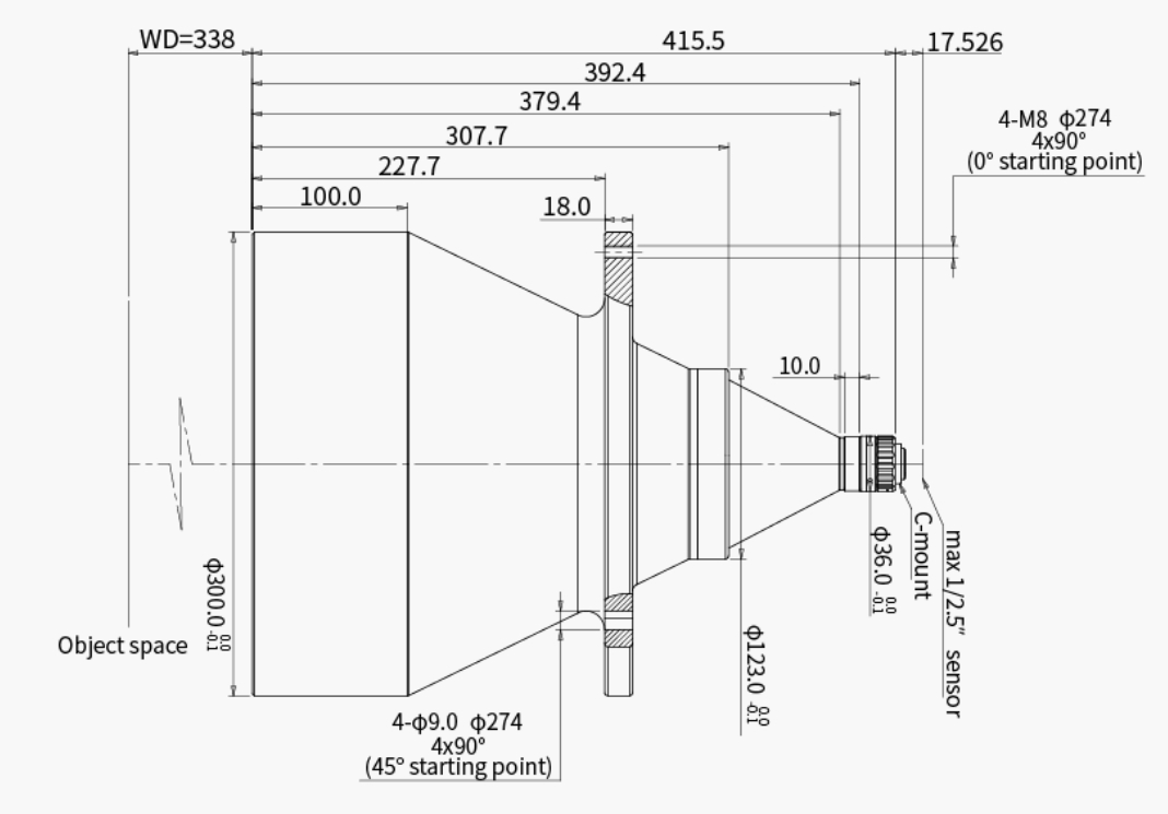 COOLENS 视清 DTCM125-258-AL 双远心镜头(小靶面) 基本参数 支持CCD尺寸(Φmm) 7.2(1/2.5") 物方视场FOV(Φmm) 258 放大倍率β(x) 0.028 物方工作距WD(mm) 338±5 像方F/# 4.2 物方景深DOF(mm) ±565@F11 像方畸变(% max) <0.1 物方远心度(° max) <0.1 物像距I/O(mm) 771±5 镜头总长(mm) 415.5 镜头接口 C 像方MTF30(lp/mm) >210 视野范围 (mmxmm) 1/3" AR130/RJ33(4.8x3.6) 171.4x128.6 1/2.5" 9P001/31 (5.7x4.28) 203.6x152.9 手机/微信:13682357734 电话:0755-84690029 QQ: 2844337877 邮箱:2844337877@qq.com...