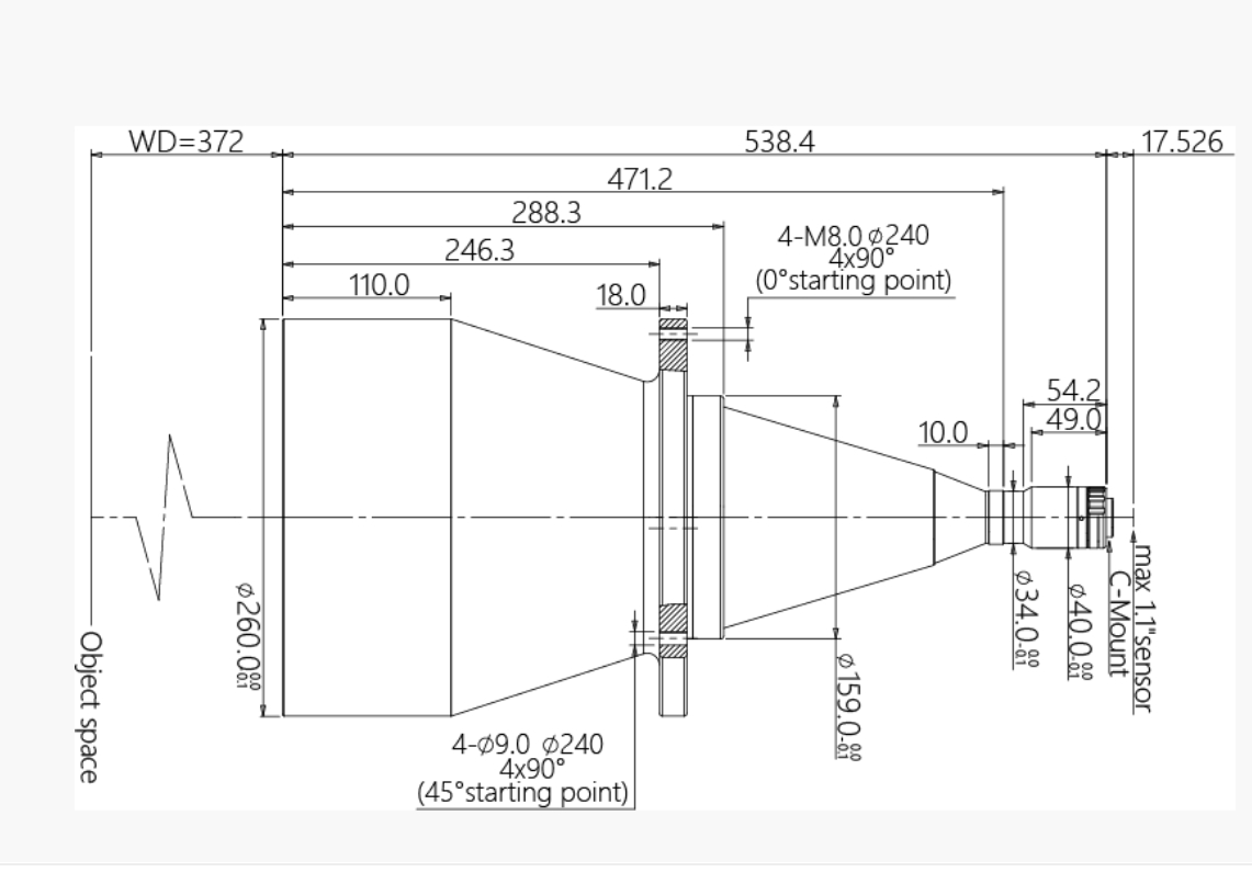COOLENS 视清 DTCM111-216-AL 双远心镜头(小靶面) 基本参数 支持CCD尺寸(Φmm) 18.4(1.1") 物方视场FOV(Φmm) 216 放大倍率β(x) 0.085 物方工作距WD(mm) 372±5 像方F/# 6.2 物方景深DOF(mm) ±60.9@F11 像方畸变(% max) <0.1 物方远心度(° max) <0.1 物像距I/O(mm) 928±5 镜头总长(mm) 538.4 镜头接口 C 净重(KG) 13.9 像方MTF30(lp/mm) >150 视野范围 (mmxmm) 1" IMX183 (13.13x8.76) 154.5x103.1 1.1" IMX253 (14.19x10.38) 166.9x122.1 手机/微信:13682357734 电话:0755-84690029 QQ: 2844337877 邮箱:2844337877@qq.com...