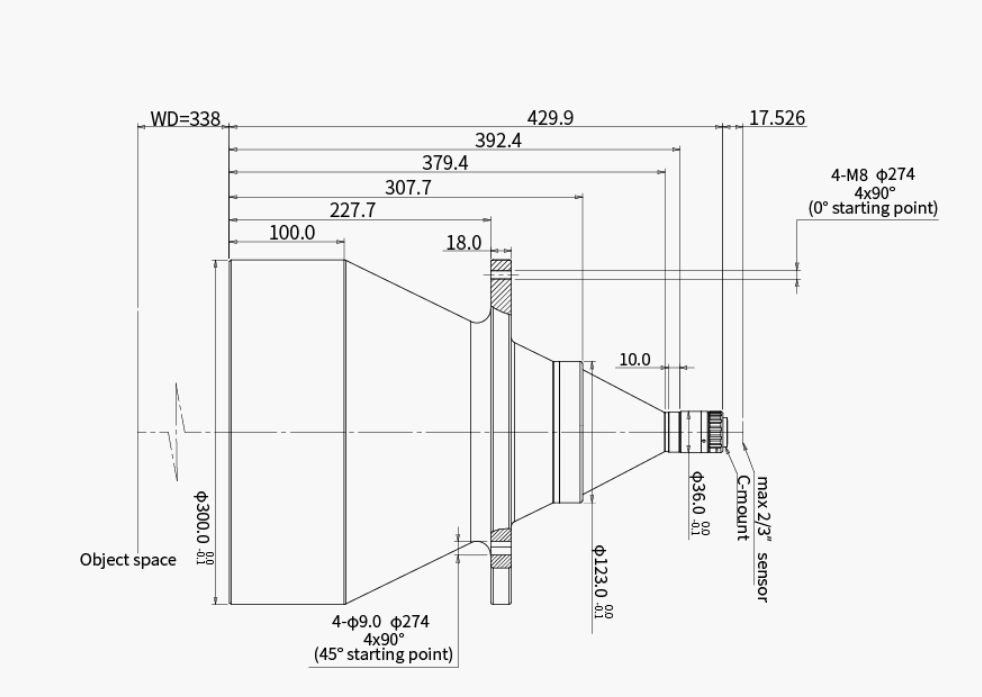 COOLENS 视清 DTCM230-258-AL 双远心镜头(小靶面) 基本参数 支持CCD尺寸(Φmm) 11.4(2/3") 物方视场FOV(Φmm) 258 放大倍率β(x) 0.044 物方工作距WD(mm) 338±5 像方F/# 4.9 物方景深DOF(mm) ±225@F11 像方畸变(% max) <0.1 物方远心度(° max) <0.1 物像距I/O(mm) 785±5 镜头总长(mm) 429.9 镜头接口 C 像方MTF30(lp/mm) >180 视野范围 (mmxmm) 1/1.8" EV76C570 (7.2x5.4) 163.6x122.7 1/1.7" IMX226 (7.5x5.6) 170.5x127.3 2/3" IMX250/264 (8.45x7.1) 192.0x161.4 手机/微信:13682357734 电话:0755-84690029 QQ: 2844337877 邮箱:2844337877@qq.com...