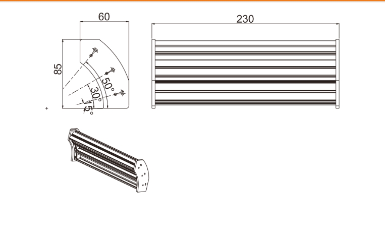 产品特点:1.结构紧凑,散热好 2.多个高亮高均匀条光组合,特殊光照角度照射 3.可根据实际需要单独调整线光的亮度和数量 |