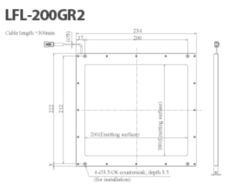 CCS希希爱视 LFL-200GR2 平面照明 LED发光颜色 Green 峰值发光波长 525 nm typ. 外观尺寸 W 222 mm x D 234 mm x H 8 mm 输入电压 24VDC 消耗功率 12 W max. 极性, 信号 1: (+), 2: NC, 3: (-) 线缆长度 300 mm 外壳材质 Aluminum alloy, Acrylic resin 输入端口 SMR-03V-B 适合规格 CE, UKCA, RoHS, IEC 62471(Exempt) 使用温湿度 Temperature: 0 to 40°C, Humidity: 20 to 85%RH (no condensation) 保存温湿度 Temperature: -20 to 60°C, Humidity: 20 to 85%RH (no condensation) 冷却方式 Natural air-cooling 重量 495 g max. 附属品 LED光源使用注意事项 手机/微信:13682357734 电话:0755-84690029 QQ: 2844337877 邮箱:2844337877@qq.com...