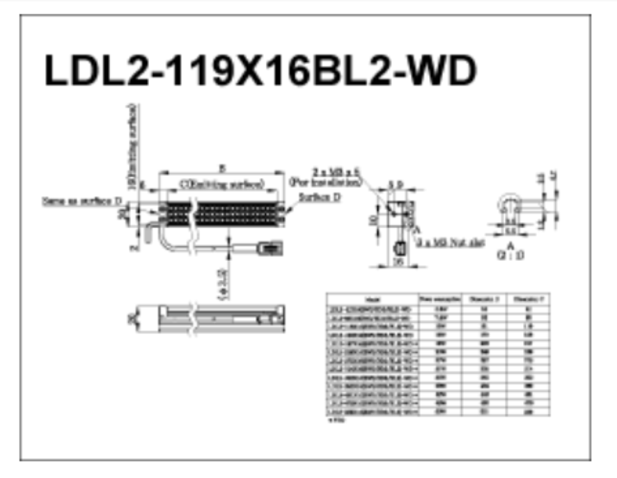 CCS希希爱视 LDL2-119X16BL2-WD 条形光源 LED发光颜色 Blue 峰值发光波长 467 nm typ. 外观尺寸 W 131 mm x D 20 mm x H 20 mm 输入电压 24VDC 消耗功率 12 W max. 极性, 信号 1: (+), 2: NC, 3: (-) 线缆长度 300 mm 外壳材质 Aluminum alloy, resin 输入端口 SMR-03V-B 适合规格 CE, UKCA, RoHS, IEC 62471(Low risk) 使用温湿度 Temperature: 0 to 40°C, Humidity: 20 to 85%RH (no condensation) 保存温湿度 Temperature: -20 to 60°C, Humidity: 20 to 85%RH (no condensation) 冷却方式 Natural air cooling 重量 95 g max. 附属品 使用说明书 手机/微信:13682357734 电话:0755-84690029 QQ: 2844337877 邮箱:2844337877@qq.com...