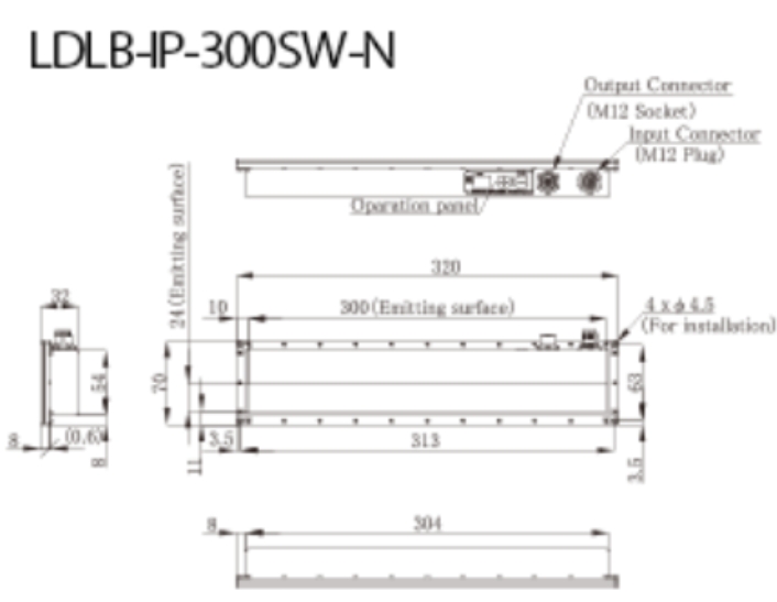 CCS希希爱视 LDLB-IP-300SW-N 条形光源 LED发光颜色 White 相关色温 6,100 K typ. 外观尺寸 W 320 mm x D 70 mm x H 32 mm 输入电压 24 VDC (rating), 22.8 to 26.4 VDC (range) 消耗功率 31 W max. 外壳材质 Aluminum alloy, resin 输入端口 M12 (5 pins, plug) 适合规格 CE, UKCA, RoHS, IEC 62471(Mod risk) 使用温湿度 Temperature: 0 to 40°C, Humidity: 20 to 85%RH (no condensation) 保存温湿度 Temperature: -20 to 60°C, Humidity: 20 to 85%RH (no condensation) 冷却方式 Natural air-cooling 重量 500 g max. 附属品 使用说明书 注意事项 * The power supply for daisy-chained Light Units must provide sufficient output for all of the Light Units.When the Light Units are used in overdrive mode, the power supply must provide 6 A or more for each Light Unit. 手机/微信:13682357734 电话:0755-84690029 &nb...