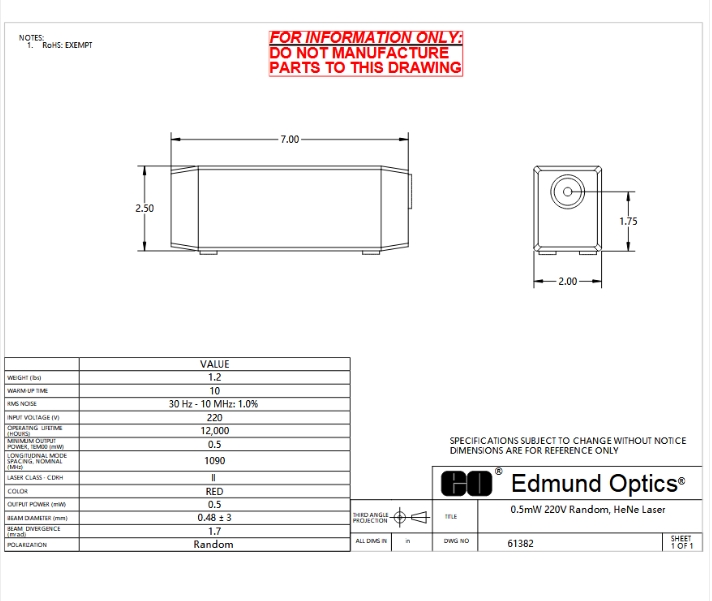 Edmund 爱特蒙特 0.5mW 线性偏振,110V,HeNe 激光器