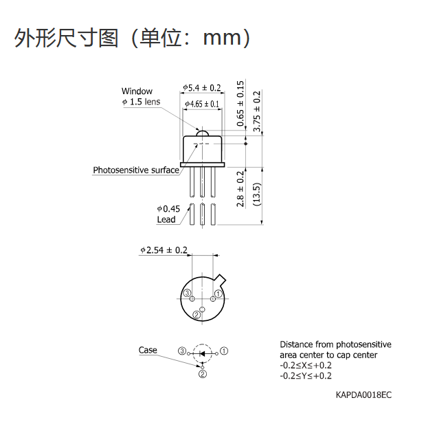 HAMAMATSU滨松 雪崩光电二极管 S12051 详细参数 类型 近红外型(低偏压操作) 受光面 φ0.5 mm 封装 金属 封装类别 TO-18 最大灵敏度波长(典型值) 800 nm 灵敏度波长范围 400 至 1000 nm 感光灵敏度(典型值) 0.5 A/W 暗电流(最大值) 1 nA 截止频率(典型值) 900 MHz 结电容(典型值) 2 pF 击穿电压(典型值) 150 V 击穿电压温度系数(典型值) 0.65 V/°C 增益率(典型值) 100 测量条件 典型值 Ta = 25°C,除非另有说明,感光灵敏度:λ = 800 nm,M = 1 0755-84690029 手机/微信:13682357734 QQ:2844337877...