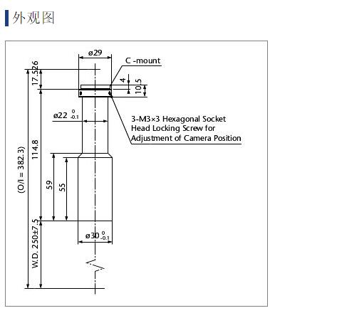 MORITEX茉丽特 FA工业镜头 ML05-250N Spec ML05-250N Magnification 1.00±5% WD (mm) 250 Resolution (μm) 13.3 Depth of Field (mm) 2.27 Effective Fno Distortion (%) 0.06 Weight (g) 90 Largest Compatible Sensor 1/2" type Mount C mount 0755-84690029 手机/微信:13682357734 QQ:2844337877