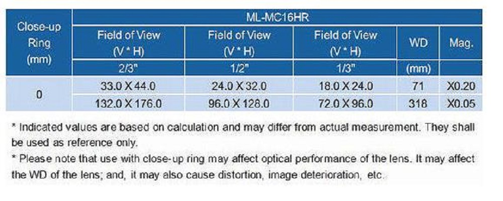 MORITEX茉丽特 FA工业镜头 ML-MC16HR Spec ML-MC16HR Focal Distance (mm) 16 Magnification x0.05 - x0.2 O/I (mm) 363.9 - 118.7 WD (mm) 317.5 - 69.8 F No. 2.6 - 16 TV Distortion (%) -0.12 or less Image format Diameter 12.8mm Weight (g) 43 0755-84690029 手机/微信:13682357734 QQ:2844337877