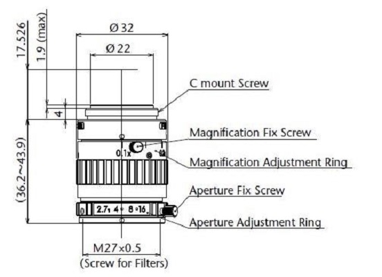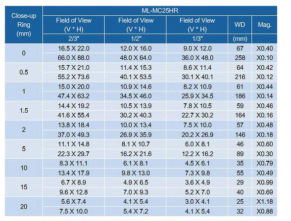 MORITEX茉丽特 FA工业镜头 ML-MC25HR Spec ML-MC25HR Focal Distance (mm) 25 Magnification x0.1 - x0.4 O/I (mm) 309.6 - 126 WD (mm) 255.9 - 64.6 F No. 2.7 - 16 TV Distortion (%) 0.05 or less Image format Diameter 12.8mm Weight (g) 52 0755-84690029 手机/微信:13682357734 QQ:2844337877
