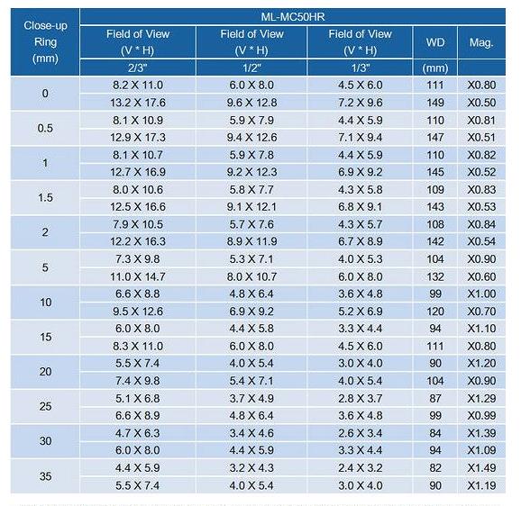 MORITEX茉丽特 FA工业镜头 ML-MC50HR Spec ML-MC50HR Focal Distance (mm) 50 Magnification x0.5 - x0.8 O/I (mm) 228.4 - 205.5 WD (mm) 149.1 - 111.1 F No. 3 - 16 TV Distortion (%) 0.07 or less Image format Diameter 12.8mm Weight (g) 95 0755-84690029 手机/微信:13682357734 QQ:2844337877