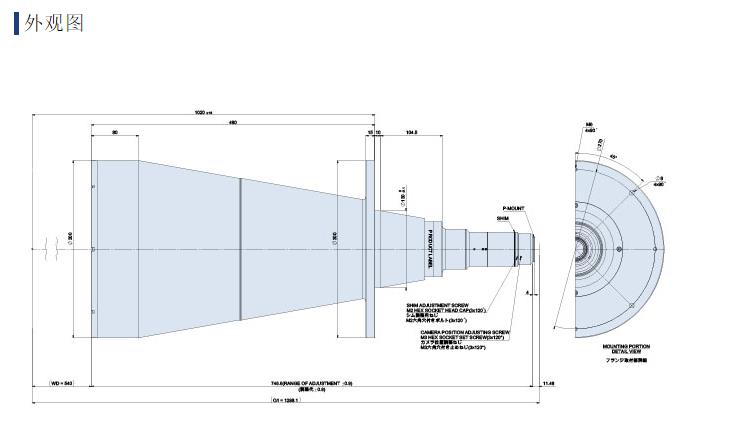 MORITEX茉丽特 远心镜头 MTL-26523P-009 Spec MTL-26523P-009 z大IF (mm) 23 视野类型 (Φmm) 265 倍率. (x) 0.087 工作距离 (mm) 540 视场 1/2型 H 6.4 74 V 4.8 55 D 8.0 92 2/3型 H 8.8 102 V 6.6 76 D 11.0 127 1.1型 H 14.1 163 V 10.3 120 D 18.1 202 4/3型 H 18.1 213 V 13.6 160 D 22.6 266 光学规格 有效F值 8.0 畸变 (%) 0.03 远心度 (deg.) 0.05 分辨率@520nm (μm) 58.6 景深@40um (mm) 85.4 外观尺寸 外径 (Φmm) 300 镜筒长 (mm) 746.7 重量 (kg) 15.5 接口 P 0755-84690029 手机/微信:13682357734 QQ:2844337877...