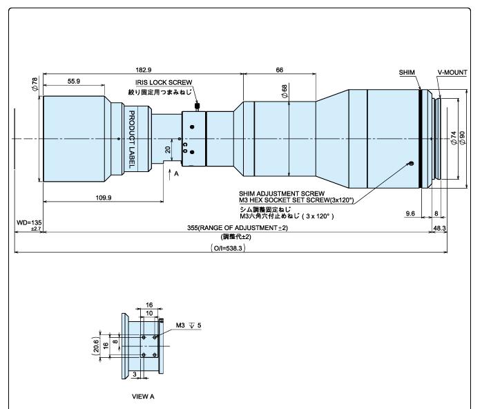 MORITEX茉丽特 远心镜头 MTL-5557V74-104 Spec MTL-5557V74-104 Z大IF (mm) 57.3 视野类型 (Φmm) 55 倍率. (x) 1.040 工作距离 (mm) 135 视场 4/3型 H 18.1 17 V 13.6 13 D 22.6 22 35mm H 23 22 V 23 22 D 32.6 31 43.5mm H 36.2 35 V 24.1 23 D 43.5 42 57.3mm H 48.7 47 V 29 28 D 56.7 55 光学规格 有效F值 15.0 畸变 (%) -0.03 远心度 (deg.) 0.04 分辨率@520nm (μm) 9.2 景深@40um (mm) 1.1 外观尺寸 外径 (Φmm) 78 镜筒长 (mm) 355.0 重量 (kg) 1.54 接口 V74 0755-84690029 手机/微信:13682357734 QQ:2844337877 邮箱:2844337877@qq.com...