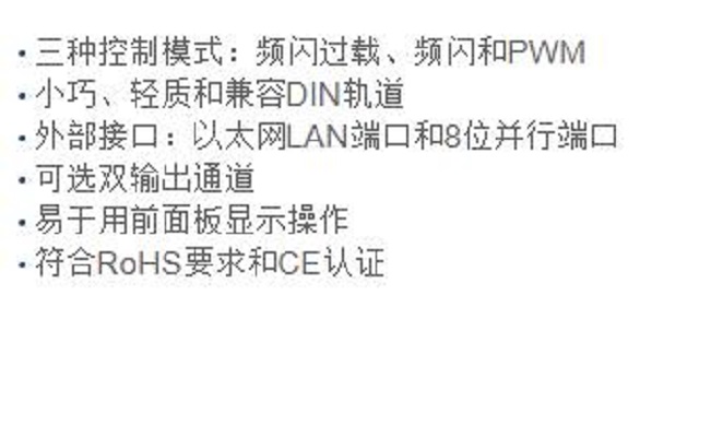 MORITEX茉丽特 LED控制器 MLEF-A015G2DT 规格 MLEF-A015G2DT 输出电压 PWM/STB:24V,STBO:40V 输出电流 PWM/STB:1.25A,STBO:4.0A 输出功率 PWM:30 W(2 通道总计);STB:15 W(每声道) 效率 70% 输入电压 DC24V±10% 输入电流 z大值,1.8 安 工作温度/湿度 0℃-45℃:31℃时线形下降到80%RH;40℃时50%RH 输出格式 输出控制方式 外部接口 LAN,并行(8 位) 脉宽调制模式 PWM 频率:100 Khz(光强度控制:250 步) 机顶盒模式 照射时间:1.1 ms-10.0 ms(90 步,增量为 0.1 ms) STBO模式 照射时间:10μs-1000μs 错误输出 基于过流/过压/超时检测的输出切断 冷却方式 自然冷却 安装方法 安装在平面上的橡胶支脚/DIN 导轨安装 外形尺寸 W65 X H140 X D99 (突出部分除外) 重量 约 800克 0755-84690029 手机/微信:13682357734 QQ:2844337877 邮箱:2844337877@qq.com...