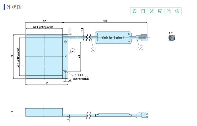 MORITEX茉丽特 工业光源 CV-NFL-63X60G Spec CV-NFL-63X60G Emitted Color Green Power [W] 3.4 External Dimension (Length) [mm] 73 External Dimension (Width) [mm] 70 Thickness [mm] 15 Lighting Area Dimension (Length) [mm] 63 Lighting Area Dimension (Width) [mm] 60 0755-84690029 手机/微信:13682357734 QQ:2844337877 邮箱:2844337877@qq.com