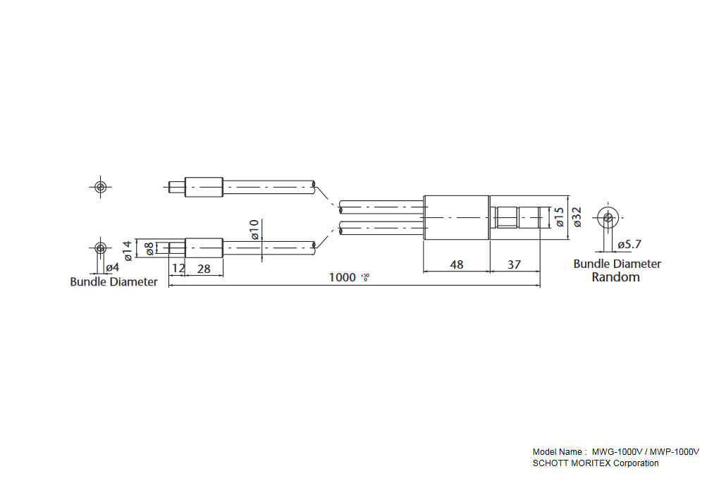 MORITEX茉丽特 双分叉光导 MWP-1000V 规格 Spec MWP-1000V Optical Fiber Material Plastic Bundle Diameter on Input Side (mm) φ5.7 Bundle Diameter on Output Side (mm) φ4 Fiber Length (mm) 1000 0755-84690029 手机/微信:13682357734 QQ:2844337877 邮箱:2844337877@qq.com