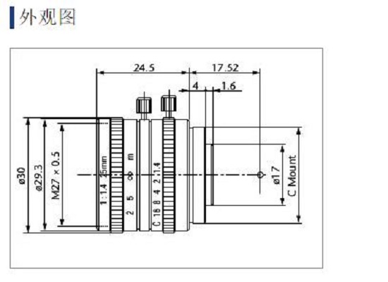 MORITEX茉丽特 工业镜头 ML-2514 Spec ML-2514 Focal Length (mm) 25 Fno F1.4 - close Angle of View 21.6° x 28.5° Length 0.5 Weight (g) 45 Largest Compatible Sensor 1 type Mount C mount Filter Screw M27 P0.5 0755-84690029 手机/微信:13682357734 QQ:2844337877 邮箱:2844337877@qq.com