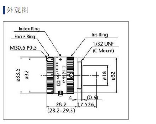 MORITEX茉丽特 工业镜头 ML-M0814MP Spec ML-M0814MP Focal Length (mm) 8 Fno F1.4 - 16C Angle of View 43.7 x 56.3 Length 0.1 Weight (g) 70 Largest Compatible Sensor 2/3" type Mount C mount Filter Screw M30.5 P0.5 0755-84690029 手机/微信:13682357734 QQ:2844337877 邮箱:2844337877@qq.com