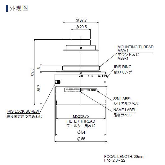 MORITEX茉丽特 FA工业镜头 ML-2828-35M39