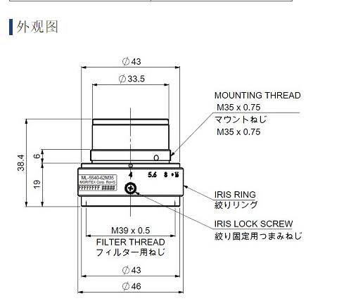 MORITEX茉丽特 FA工业镜头 ML-5540-62M35