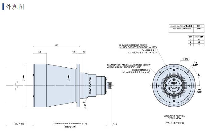 MORITEX茉丽特 远心光源MTI系列 MTI-120-CG-070 Spec MTI-120-CG-070 颜色 绿色 照明区域(φmm) 120 工作距离(mm) 175 颜色温度(K)小—大 - 主波长(nm) 小—大 520~550 照明角度(度) 0~0.24 长度(mm) *1 292.9 外径(mm) 160 重量(kg) 3.6 额定电流(Ma) 700 功率(W) 3 0755-84690029 手机/微信:13682357734 QQ:2844337877 邮箱:2844337877@qq.com