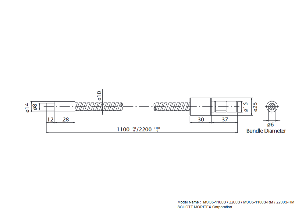 MORITEX茉丽特 直线光导 MSG6-1100S-RM 规格 Spec MSG6-1100S-RM Optical Fiber Material Glass Bundle Diameter (mm) 6 Fiber Length (mm) 1100 Tube SUS flexible Notes Random array 0755-84690029 手机/微信:13682357734 QQ:2844337877 邮箱:2844337877@qq.com
