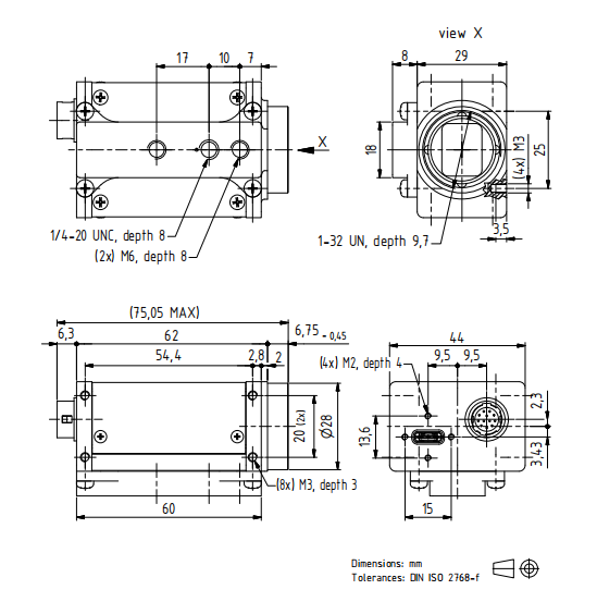 IMAGINGSOURCE映美精 工业相机 DFK 38UX267 特性概要 视觉标准 动态范围 12 bit 分辨率 4,096×2,160 (8.8 MP) 帧率 35 fps 视频输出格式 8-Bit Monochrome, 8-Bit Bayer (RG), 12-Bit Bayer Packed (RG), 16-Bit Bayer (RG), RGB24, YUV 4:2:2, YUV 4:1:1 接口 (光学) 红外截止滤光片 传感器类型 CMOS Pregius 传感器规格 Sony IMX267 快门 全局 规格 1 inch 像素 水平: 3.45 µm, 垂直: 3.45 µm 镜头接口 C (CS可选) 接口 (电子) 接口 USB 3.1 供应电压 4.75 VDC 至 5.25 VDC 消耗电流 大约 800 mA @ 5 VDC 自动光圈控制 触发器 输入/输出 接口 (机械) 尺寸 高: 29 mm, 宽: 44 mm, 长: 60 mm 重量 110 g 调整 快门 2 µs 至 4 s 增益 0 dB 至 48 dB 环境 温度 (作业) -5 °C 至 45 °C 温度 (储存) -20 °C 至 60 °C 湿度 (作业) 20 % 至 80 % (非冷凝) 湿度 (储存) 20 % 至 95 % (非冷凝) 0755-84690029 &nbs...