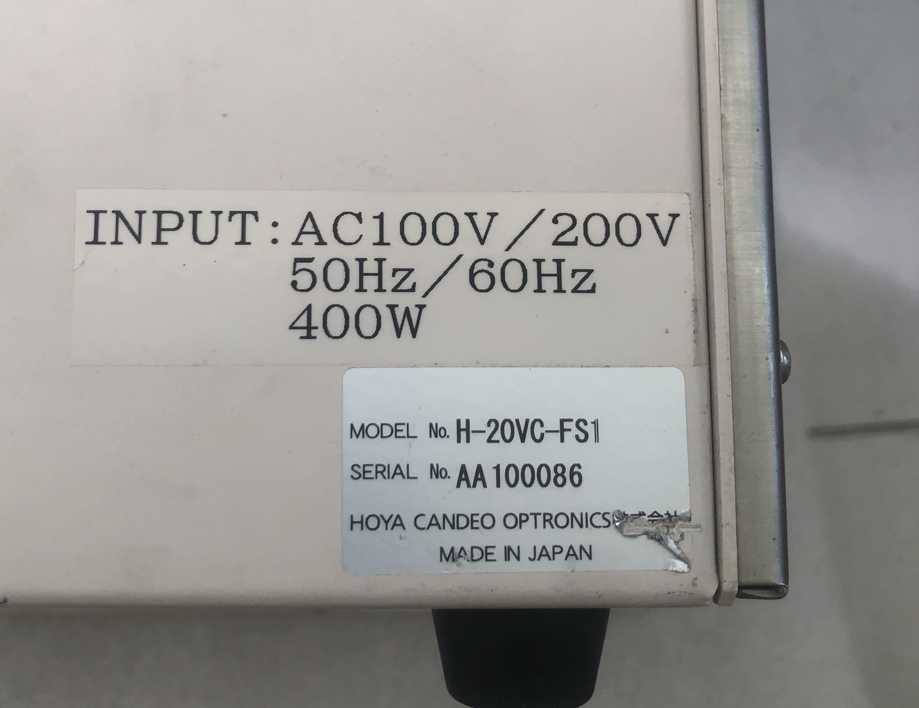 HOYA豪雅 手动mat-h ac100v200v 50hz60hz 400w H-20vc-FS AA100086