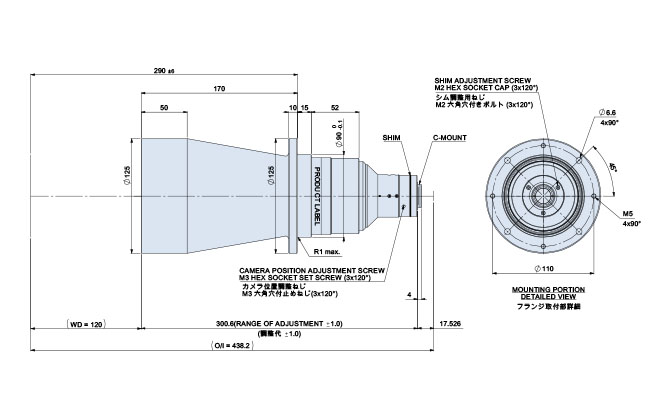 MORITEX茉丽特 MTL-9011C-012 双远心镜头 ▪ 超大视野,双侧远心,平行光路; ▪ 高分辨率,可支持到3.5μm像素的相机; ▪ 10种视野 ▪ 在视野范围内可保证高度一致的光学参数曲线 ▪ C接口 : 1-32UNF, FB17.526mm Spec MTL-9011C-012 最大IF (mm) 11 视野类型 (Φmm) 90 倍率. (x) 0.122 工作距离 (mm) 120 视场 1/3型 H 4.8 39 V 3.6 29 D 6 49 1/2型 H 6.4 52 V 4.8 39 D 8 65 1/1.8型 H 7.1 58 V 5.3 43 D 8.9 73 2/3型 H 8.8 72 V 6.6 54 D 11 90 光学规格 有效F值 8.0 畸变 (%) -0.02 远心度 (deg.) 0.03 分辨率@520nm (μm) 41.8 景深@40um (mm) 43.1 外观尺寸 外径 (Φmm) 125 镜筒长 (mm) 300.6 重量 (kg) 1.85 接口 C 手机/微信:13682357734 电话:0755-84690029 QQ:2844337877 邮箱:2844337877@qq.com...