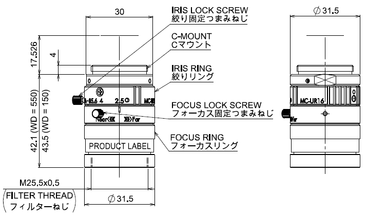 MORITEX茉丽特 ML-MC16UR-16C 微距/CCTV镜头