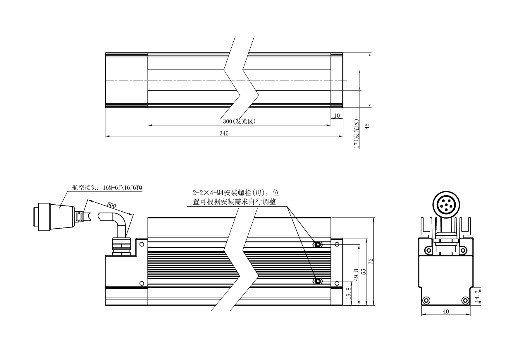 IRAYPLE 大华华睿 PFM-XS300W-4A1 工业光源 基本参数 型号 PFM-XS300W-4A1 类型 线光源 颜色 白色 色温 6000 -6500K 功率 39 W 输入电压 DC48V 线缆长度 1500 mm 外部接口 光源接口 φ16 mm-6芯航空头 结构参数 发光面尺寸 300×17 mm 产品尺寸 345×45×72 mm 环境参数 工作温度 0~40℃ 工作湿度 20~85%RH(非凝结) 储存温度 -20~60℃ 储存湿度 20~85%RH(非凝结) 手机/微信:13682357734 电话:0755-84690029 QQ:2844337877 邮箱:2844337877@qq.com...