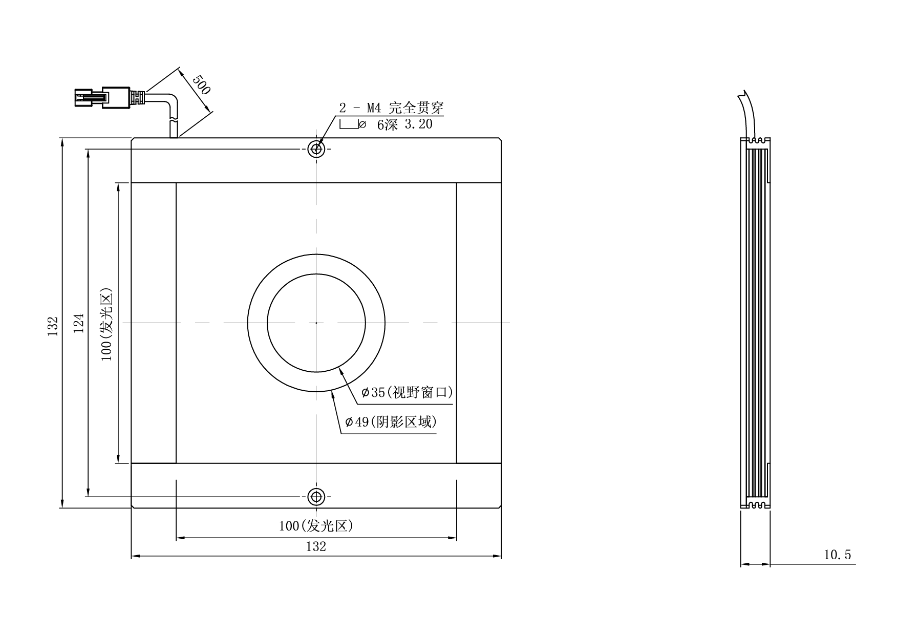 IRAYPLE 大华华睿 PFM-CMO100100CO35W-A-1A2 工业光源 基本参数 型号 PFM-CMO100100Y35W-A-1A2 类型 开孔侧部面光源 颜色 白色 色温 6000 -6500K 功率 13.6 W 输入电压 DC24V 线缆长度 500 mm 外部接口 光源接口 SMP-03V-B-A(1:输出+ 2:NC3:输出-) 结构参数 发光面尺寸 100×100 mm 开孔直径 100×100 mm 冷却方式 自然冷却 漫射板 有 产品尺寸 132×132×10.5 mm 环境参数 工作温度 0~40℃ 工作湿度 20~85%RH(非凝结) 储存温度 -20~60℃ 储存湿度 20~85%RH(非凝结) 手机/微信:13682357734 电话:0755-84690029 QQ:2844337877 邮箱:2844337877@qq.com...