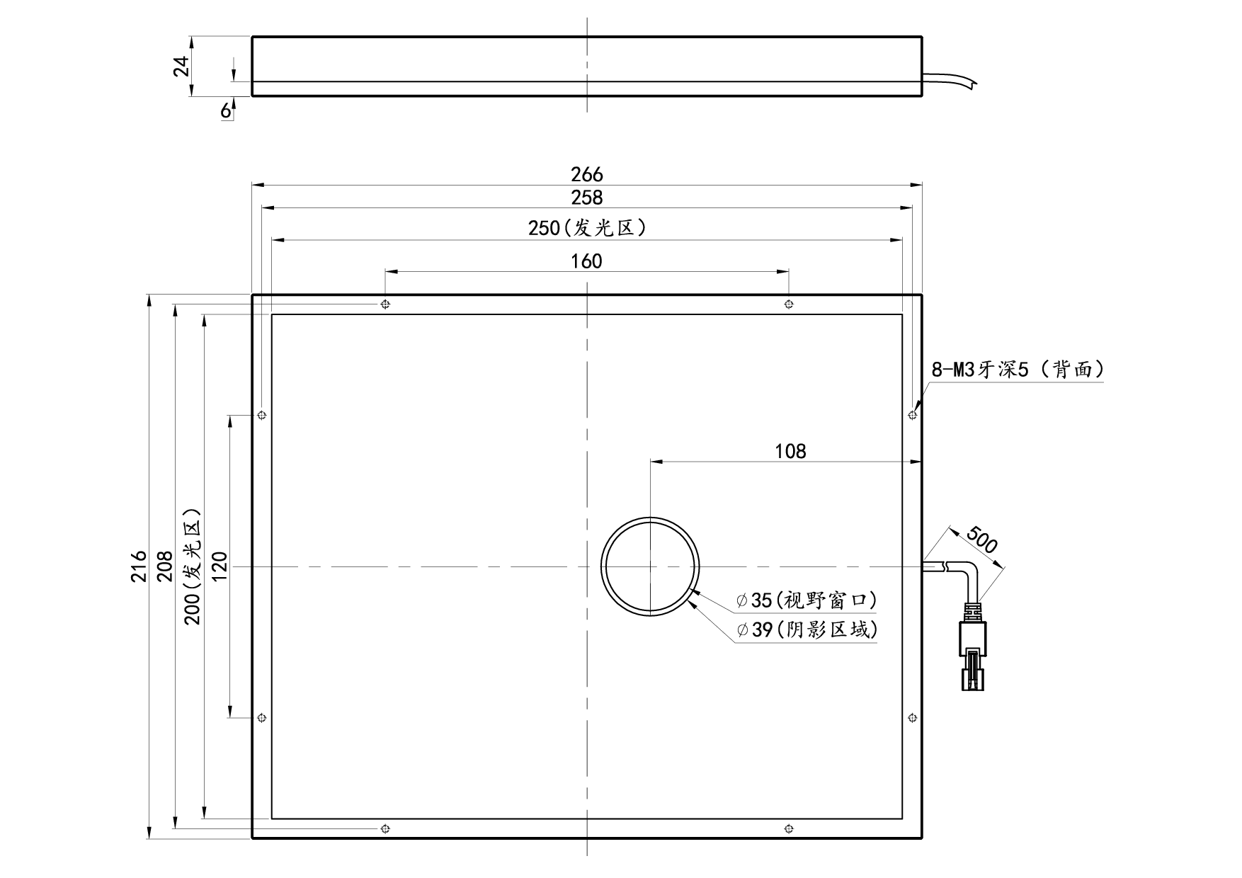 IRAYPLE 大华华睿 PFM-DMO250200CO35W-A-1A2 工业光源 基本参数 型号 PFM-DMO250200CO35W-A-1A2 类型 开孔面光源 颜色 白色 色温 6000 -6500K 功率 49 W 输入电压 DC24V 线缆长度 500 mm 外部接口 光源接口 SMP-03V-B-A(1:输出+ 2:NC3:输出-) 结构参数 发光面尺寸 250×200 mm 开孔直径 φ35 mm 冷却方式 自然冷却 漫射板 有 产品尺寸 266×216×24 mm 环境参数 工作温度 0~40℃ 工作湿度 20~85%RH(非凝结) 储存温度 -20~60℃ 储存湿度 20~85%RH(非凝结) 手机/微信:13682357734 电话:0755-84690029 QQ:2844337877 邮箱:2844337877@qq.com...