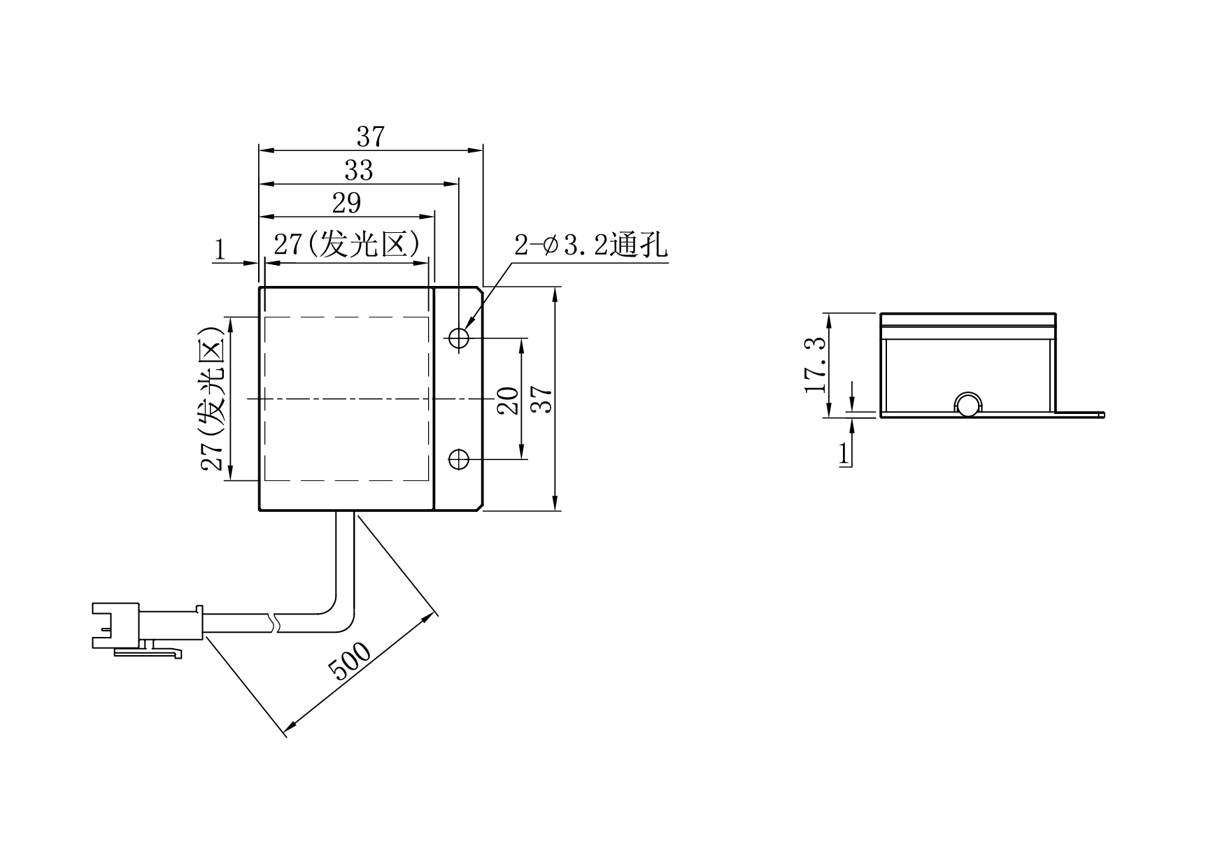IRAYPLE 大华华睿 PFM-DMPS2727W-A-1A2 工业光源 基本参数 型号 PFM-DMPS2727W-A-1A2 类型 平行面光源 颜色 白色 色温 6000 -6500K 功率 1.7 W 输入电压 DC24V 线缆长度 500 mm 外部接口 光源接口 SMP-03V-B-A(1:输出+ 2:NC3:输出-) 结构参数 发光面尺寸 27×27 mm 冷却方式 自然冷却 漫射板 有 产品尺寸 37×37×17.3 mm 环境参数 工作温度 0~40℃ 工作湿度 20~85%RH(非凝结) 储存温度 -20~60℃ 储存湿度 20~85%RH(非凝结) 手机/微信:13682357734 电话:0755-84690029 QQ:2844337877 邮箱:2844337877@qq.com...