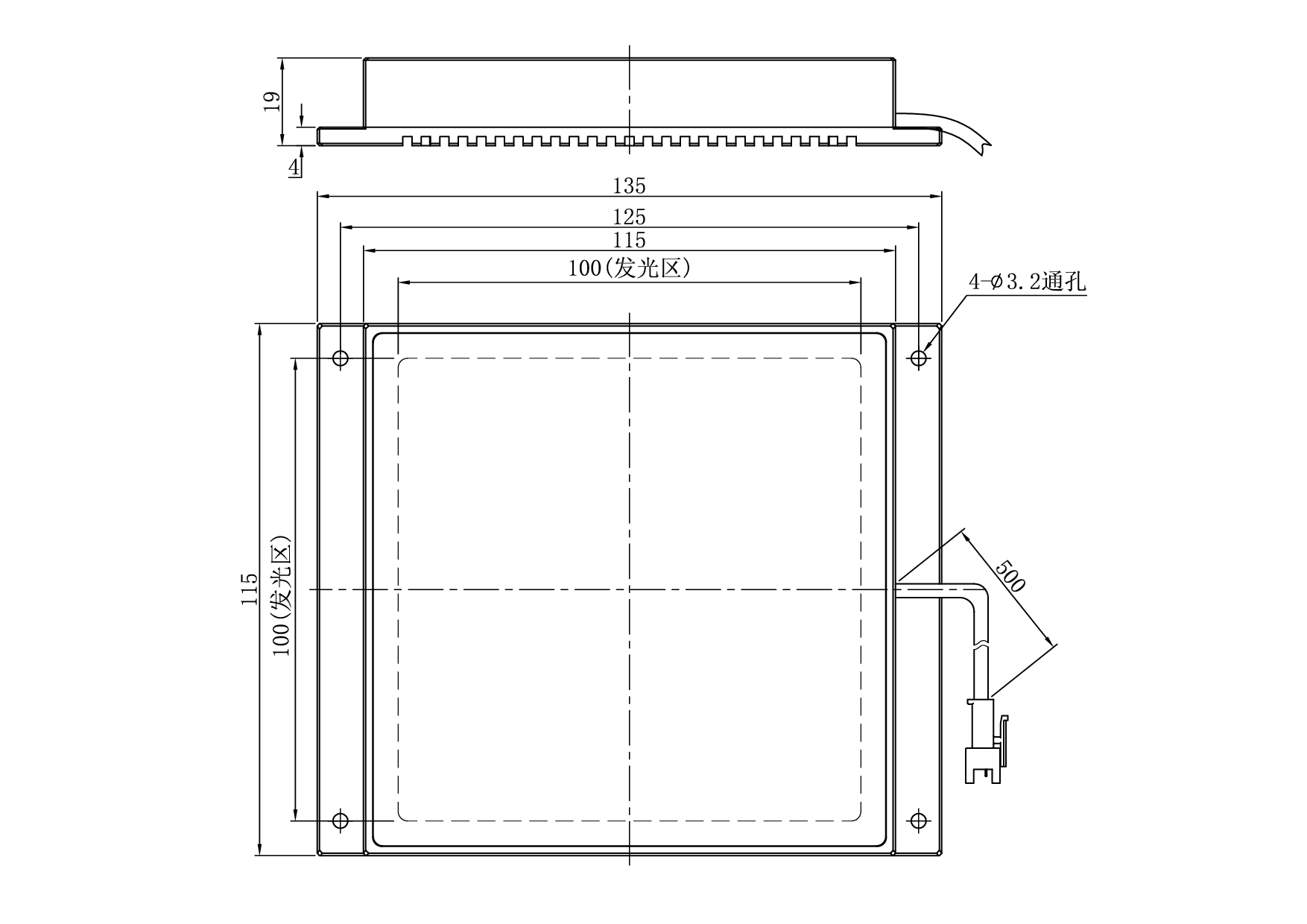 发光面尺寸100×100 mm