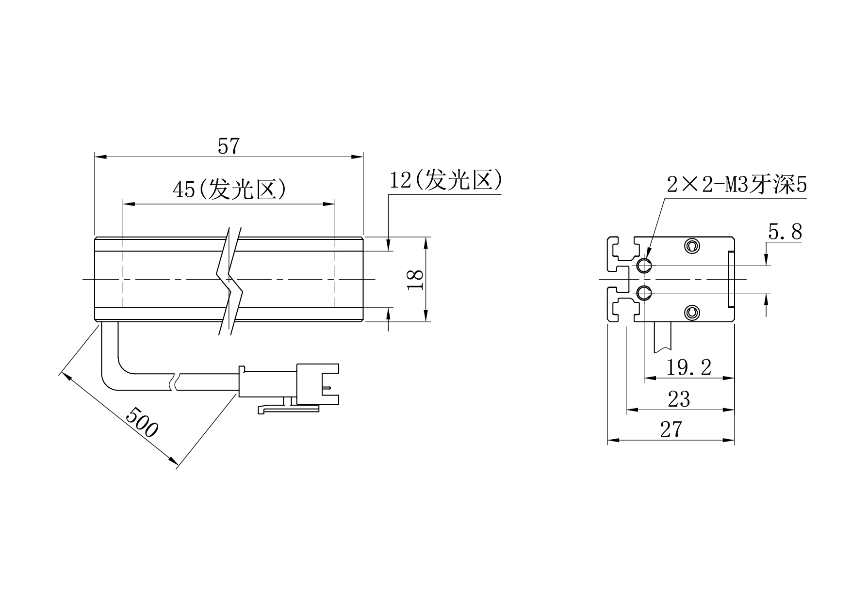 发光面尺寸45×12 mm