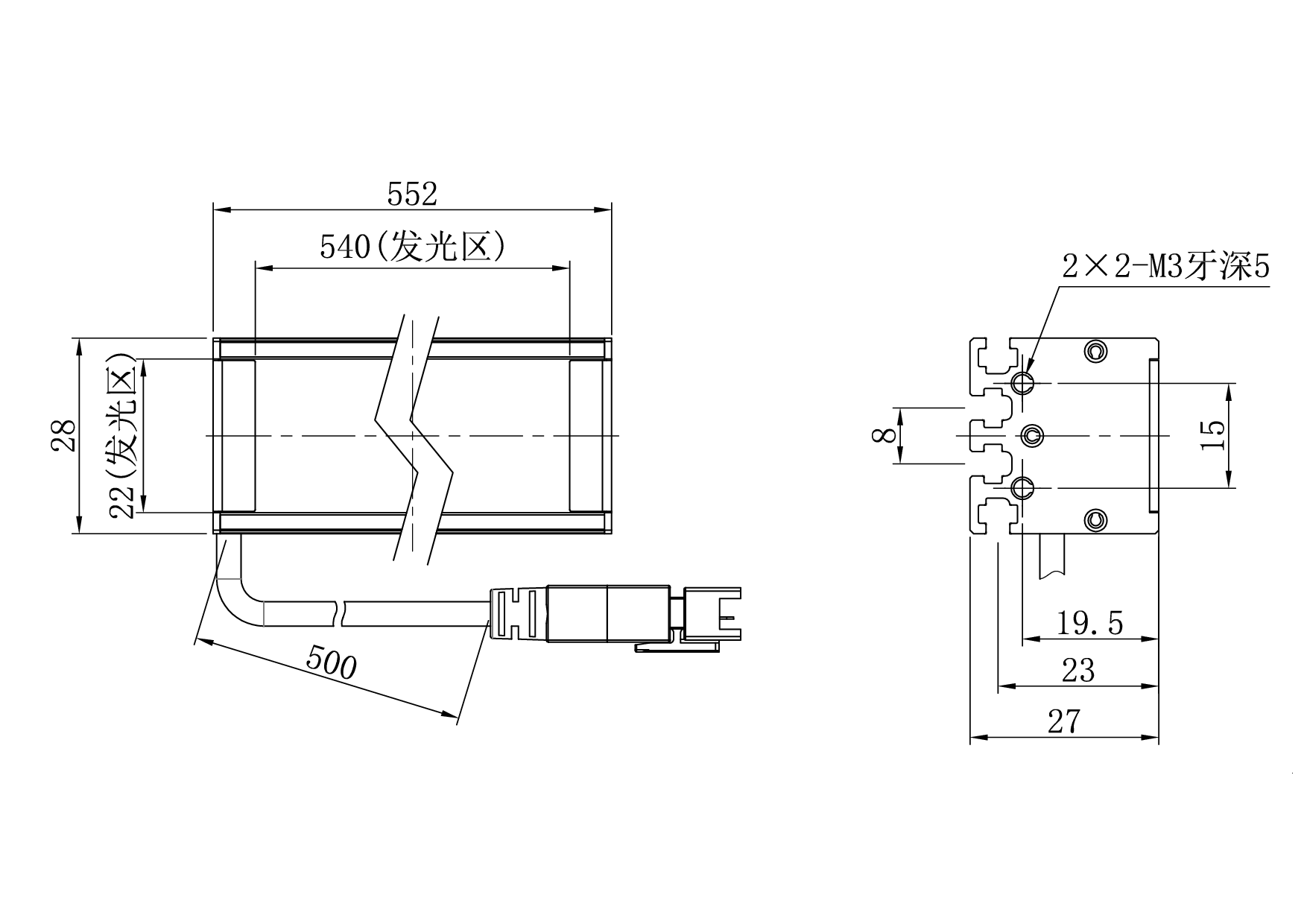 发光面尺寸540×22 mm