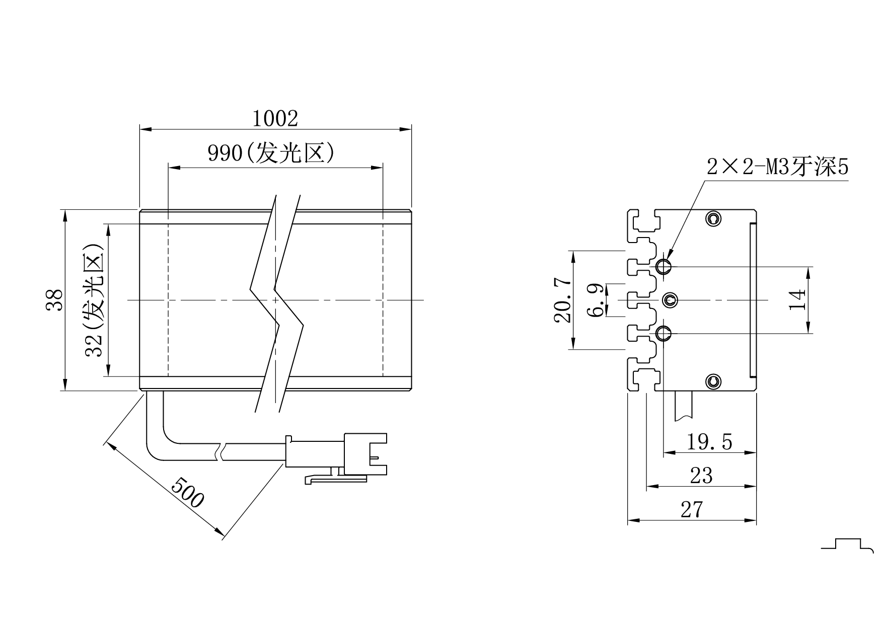 发光面尺寸990×32 mm