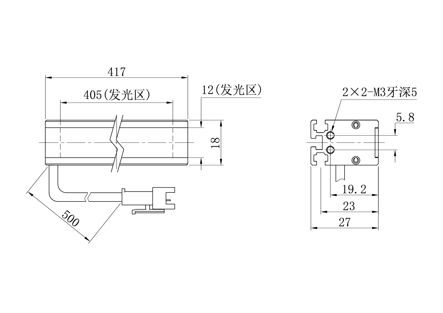 发光面尺寸405×12 mm