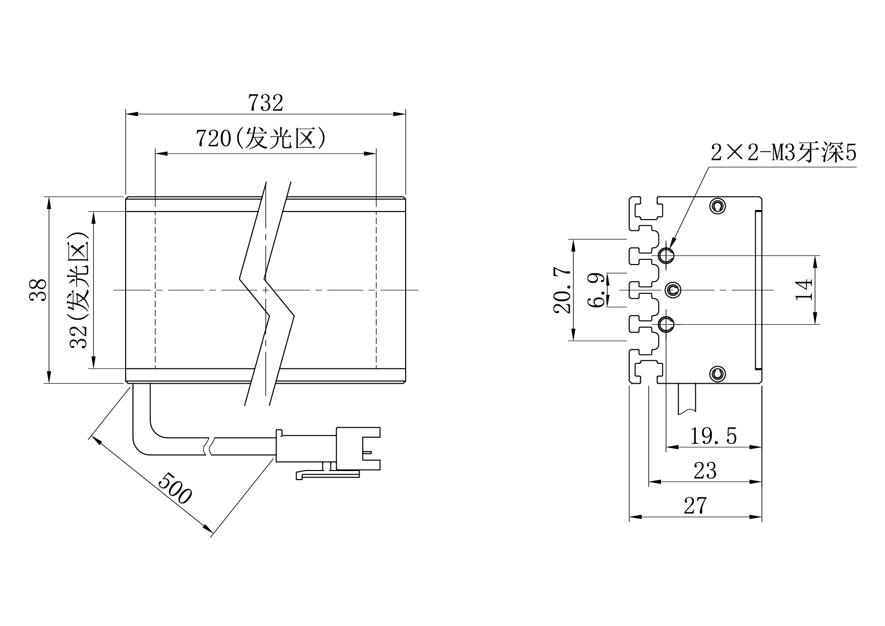 IRAYPLE 大华华睿 PFM-TX73238W-A-1A1 工业光源 基本参数 型号 PFM-TX73238W-A-1A1 类型 条形光源 颜色 白色 色温 6000 -6500K 功率 58 W 输入电压 DC24V 线缆长度 500 mm 外部接口 光源接口 SMP-03V-B 结构参数 灯珠排数 6 发光面尺寸 720×32 mm 冷却方式 自然冷却 漫射板 有 产品尺寸 732×38×27 mm 环境参数 工作温度 0~40℃ 工作湿度 20~85%RH(非凝结) 储存温度 -20~60℃ 储存湿度 20~85%RH(非凝结) 手机/微信:13682357734 电话:0755-84690029 QQ:2844337877 邮箱:2844337877@qq.com...