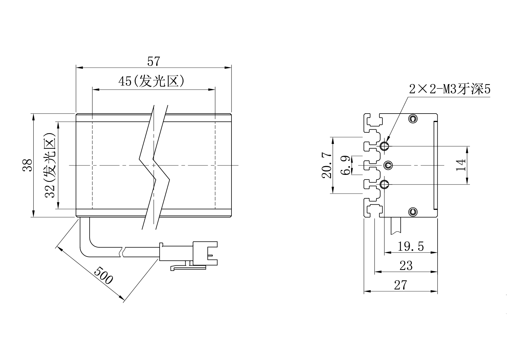 IRAYPLE 大华华睿 PFM-TX5738W-A-1A1 工业光源 基本参数 型号 PFM-TX5738W-A-1A1 类型 条形光源 颜色 白色 色温 6000 -6500K 功率 3.6 W 输入电压 DC24V 线缆长度 500 mm 外部接口 光源接口 SMP-03V-B 结构参数 灯珠排数 6 发光面尺寸 45×32 mm 冷却方式 自然冷却 漫射板 有 产品尺寸 57×38×27 mm 环境参数 工作温度 0~40℃ 工作湿度 20~85%RH(非凝结) 储存温度 -20~60℃ 储存湿度 20~85%RH(非凝结) 手机/微信:13682357734 电话:0755-84690029 QQ:2844337877 邮箱:2844337877@qq.com...