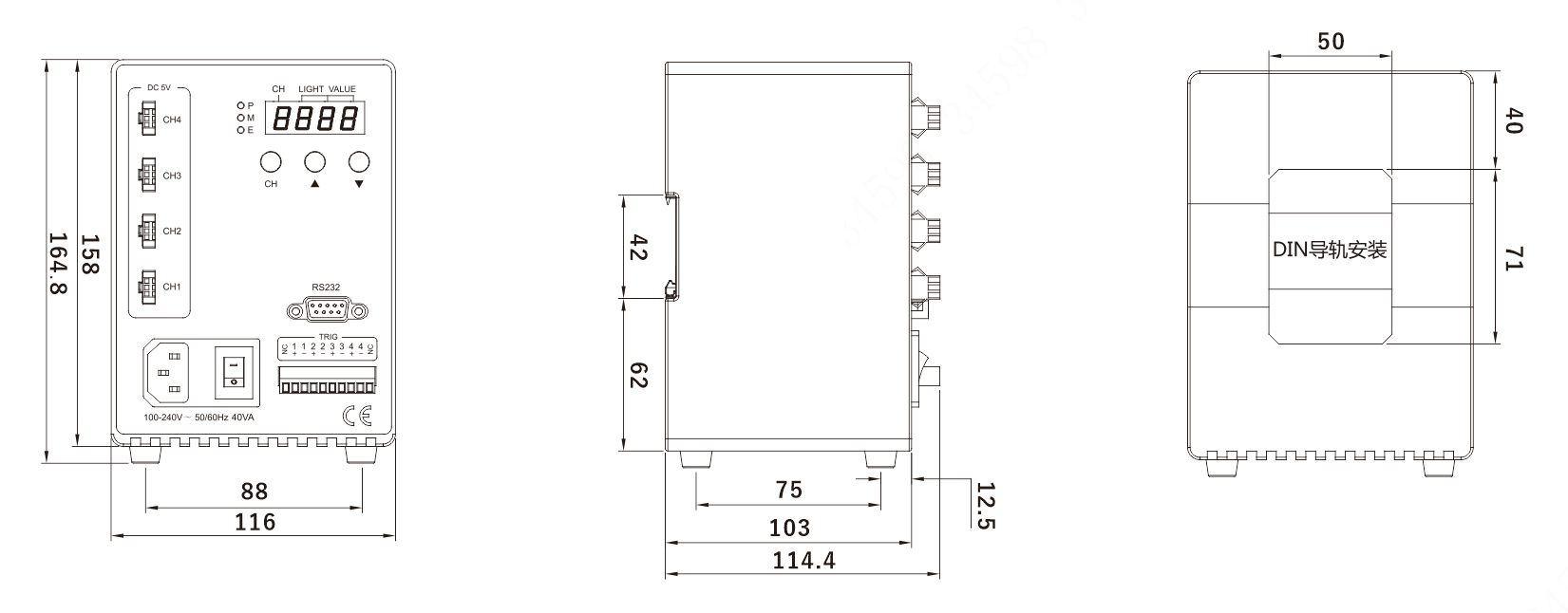 IRAYPLE 大华华睿 LC-DC0530-4TSG-2A1 光源控制器 基本参数 类型 数字恒流控制器 型号 LC-DC0530-4TSG-2A1 驱动方式 恒流 亮度控制 可变电流控制/面板按键/RS232 通道数 4 掉电参数保存 支持 电器特性 输入电压 AC100-240V 50/60HZ 输出电压 DC5 V 输出电流 1.1 A(单通道) 输出总电流 1.1 A 输出功率 30 W 供电接口 SMP-03V-B-B(1:NC 2:输出+:3:输出-) 短路保护 支持 过压保护 支持 过流保护 支持 触发方式 电平触发 外触发电压 DC5~24 V (电流约5.6mA) 触发响应时间 <10 μs(与负载有关) 频闪脉宽 0-999ms 结构参数 安装方式 螺丝安装&DIN导轨安装 产品尺寸 116 mm ×114.4 mm ×164.8 mm 外壳材料 塑料 风扇控制 支持 冷却方式 强制冷却 环境参数 工作温度 0~40℃ 工作湿度 20~85%RH(非凝结) 储存温度 -20~60℃ 储存湿度 20~85%RH(非凝结) 手机/微信:13682357734 电话:0755-84690029 QQ:2844337877 邮箱:2844337877@qq.com...