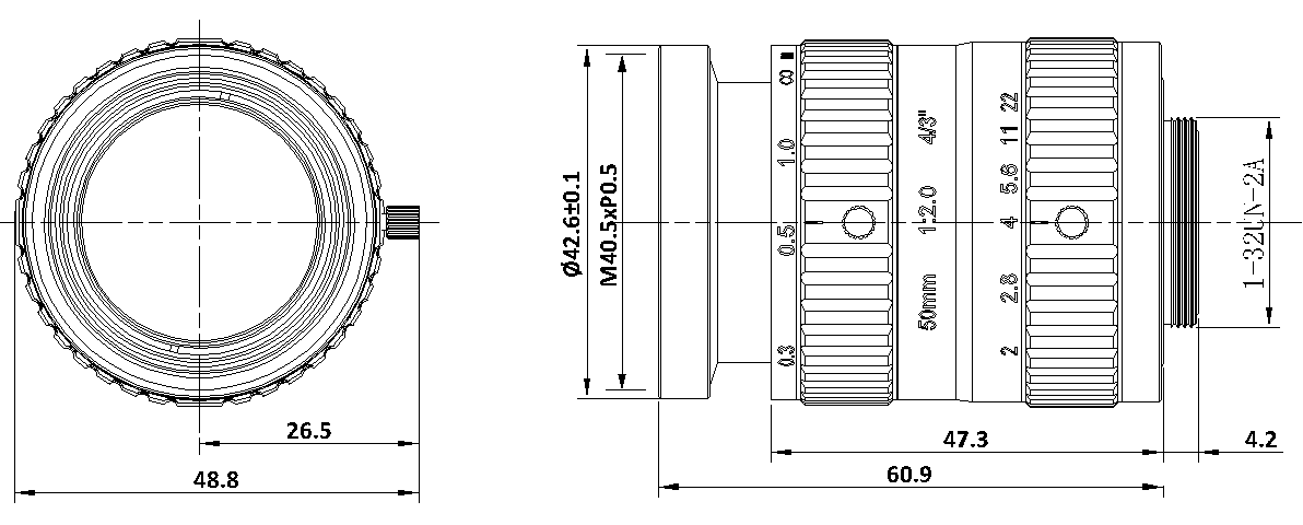IRAYPLE 大华华睿 MH5020K 面阵镜头 基本参数 系列 MH-K系列 型号 MH5020K 镜头焦距 50mm 光圈孔径 F2.0 - F22 像面尺寸 Ф23mm(4/3") 对焦范围 0.3m to infinite 光学畸变 -0.14% TV畸变 -0.11% 视场角 25.9°x20.9°x15.7°(4/3") 相对照度 50% (F2.0); 90% (F4.0) 主光线入射角 14.8° 光谱范围 436nm~656nm 光谱透过率 T>85% 净重 170 g 结构 安装接口 C口 滤镜接口 M40.5xP0.5 对焦方式 手动调节 光圈控制 手动调节 产品尺寸 60.7mm x Ф42.6mm 环境 工作温度 -20°C ~ +50°C 手机/微信:13682357734 电话:0755-84690029 QQ:2844337877 邮箱:2844337877@qq.com...
