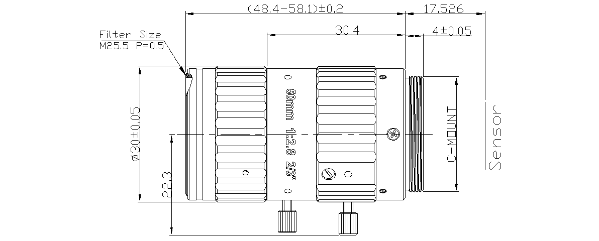 IRAYPLE 大华华睿 MK5028M 面阵镜头 基本参数 系列 MK-M系列 型号 MK5028M 镜头焦距 50 mm 光圈孔径 F2.8 - 16 像面尺寸 Ф11.4mm(2/3") 对焦范围 0.2 m to infinite 光学畸变 0.05% TV畸变 -0.01% 视场角 12.6° × 10.1° × 7.6°(11 mm × 8.5 mm × 7.12 mm) 相对照度 85% (F2.8); 97% (F4.0) 主光线入射角 5° 光谱范围 436 nm~656 nm 光谱透过率 T>85% 净重 86.5±5 g 结构 安装接口 C口 滤镜接口 M25.5 × P0.5 对焦方式 手动调节 光圈控制 手动调节 产品尺寸 58.1 × Ф30 mm 环境 工作温度 -20°C ~ +50°C 手机/微信:13682357734 电话:0755-84690029 QQ:2844337877 邮箱:2844337877@qq.com...