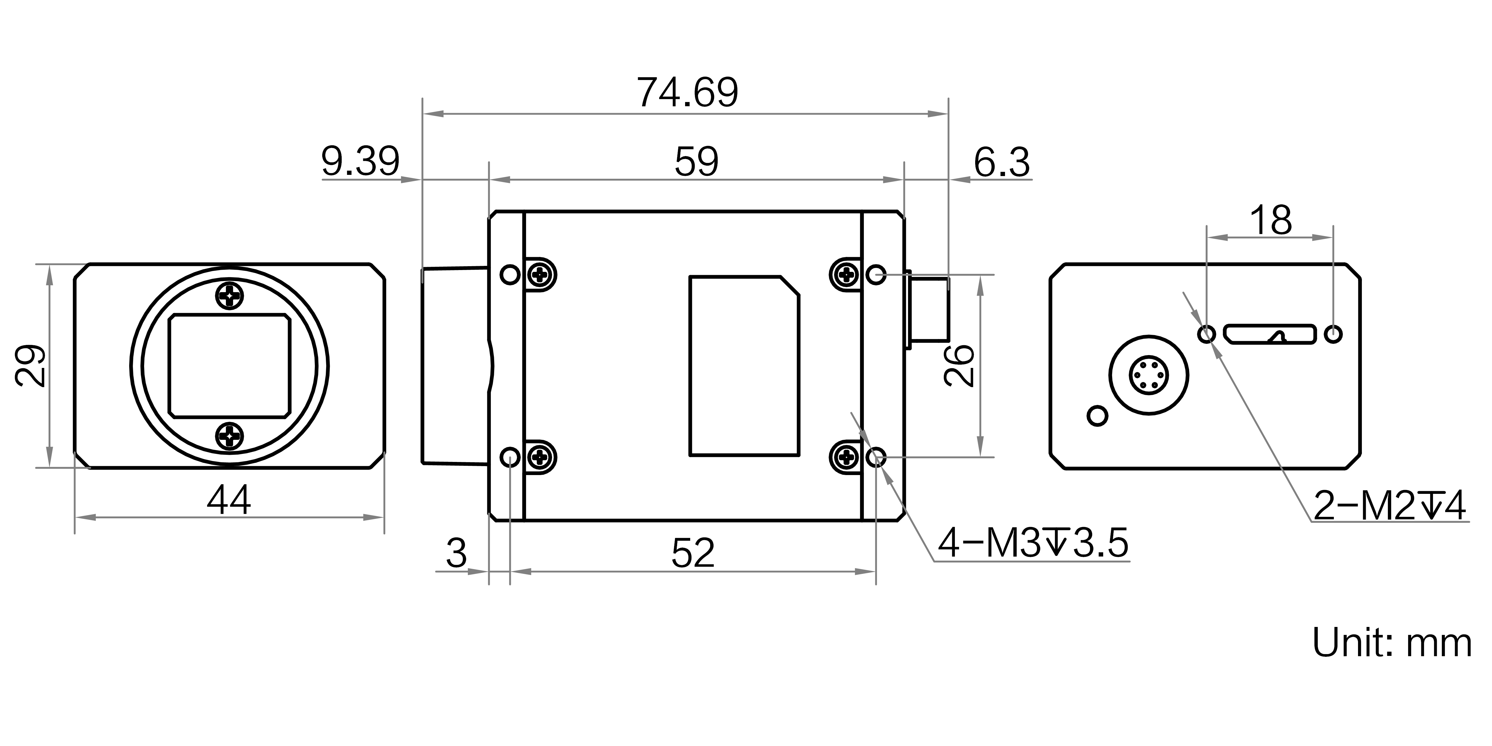 HIKROBOT 海康机器人 MV-CH100-60UM 工业面阵相机 型号 型号 MV-CH100-60UM 名称 1000万像素USB 3.0面阵相机,黑白 性能 传感器类型 CMOS,全局快门 传感器型号 堆栈式BSI 像元尺寸 3.45 µm × 3.45 µm 靶面尺寸 1” 分辨率 4096 × 2460 最大帧率 36 fps @4096 × 2460 Mono 8 动态范围 58.2 dB 信噪比 43 dB 增益 0 dB ~ 24 dB 曝光时间 80 μs ~ 10 sec 快门模式 支持自动曝光、手动曝光、一键曝光模式 黑白/彩色 黑白 像素格式 Mono 8/10/10Packed/12/12Packed Binning 支持1 × 1,2 × 2,4 × 4 下采样 支持1 × 1,2 × 2,4 × 4 镜像 支持水平镜像、垂直镜像 电气特性 数据接口 USB3.0 数字I/O 6-pin P7接头提供电源和I/O:1路光耦隔离输入(Line0),1路光耦隔离输出(Line1),1路双向可配置非隔离I/O(Line2) 供电 9~24 VDC,支持USB供电 典型功耗 3.6 W@5 VDC(USB3.0 供电) 结构 镜头接口 C-mount 外形尺寸 29 mm x...