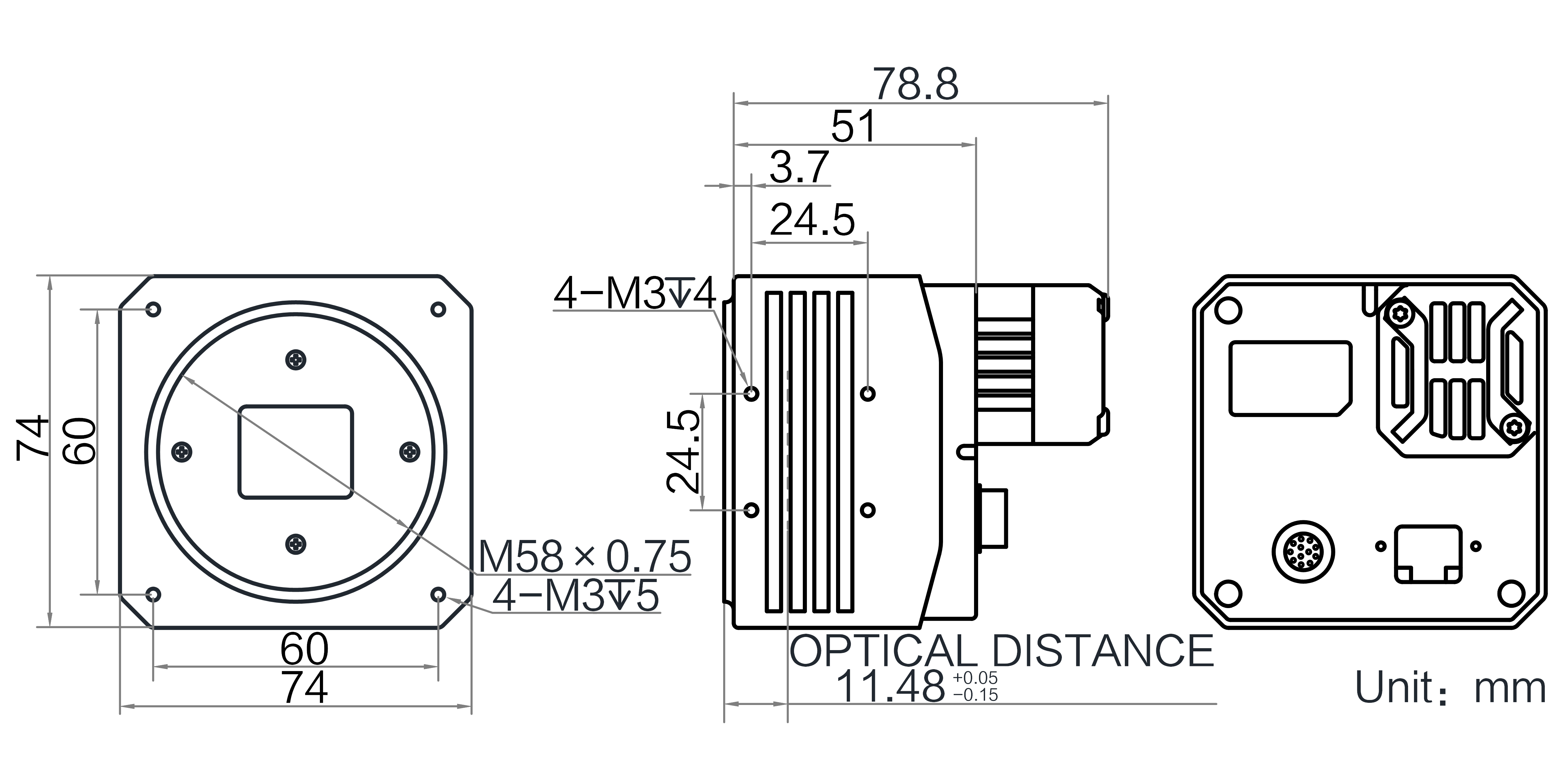 | 结构 | 镜头接口 | M58*0.75,法兰后焦11.48 mm |