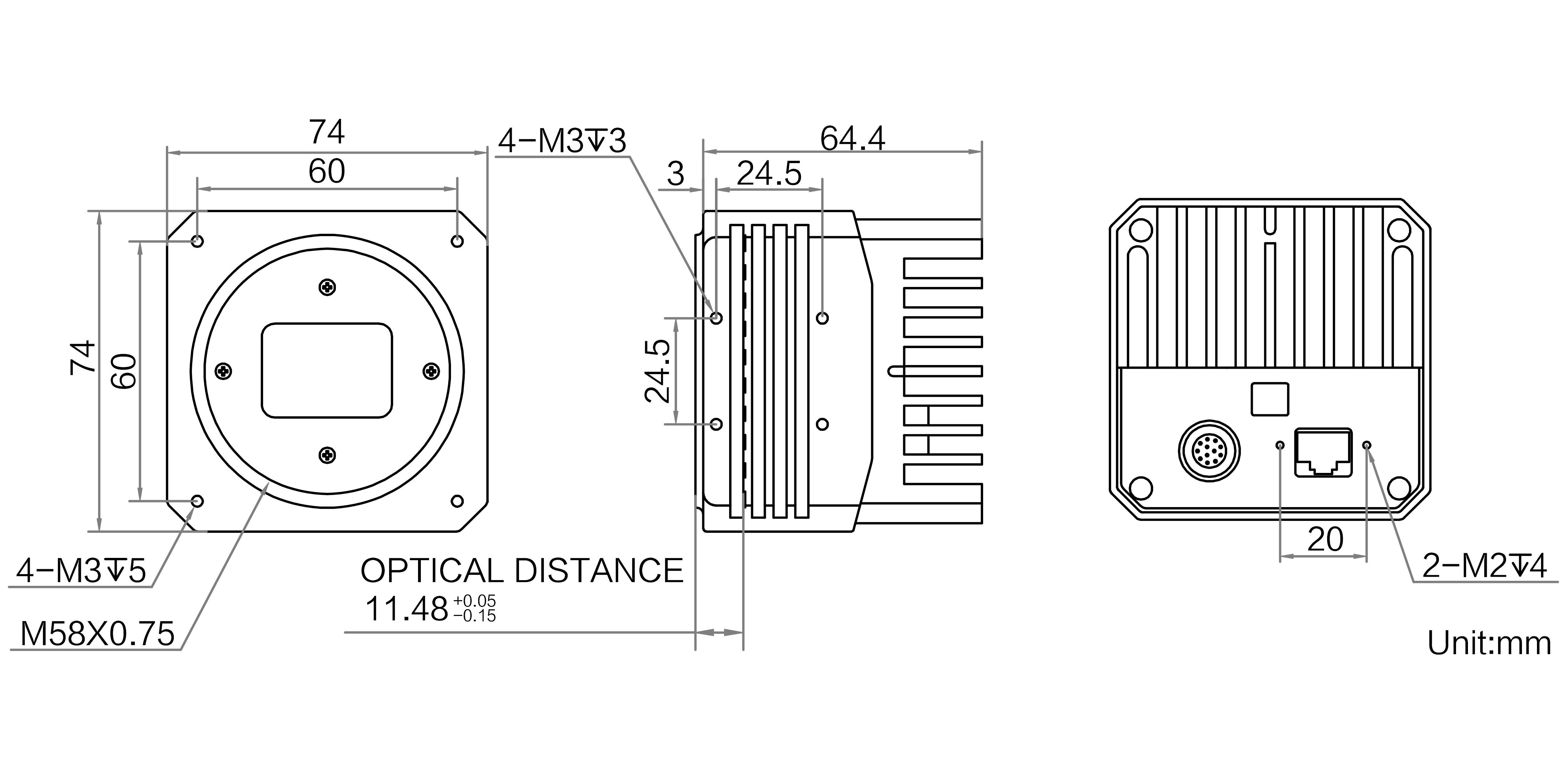 | 结构 | 镜头接口 | M58*0.75,光学后焦11.48 mm |