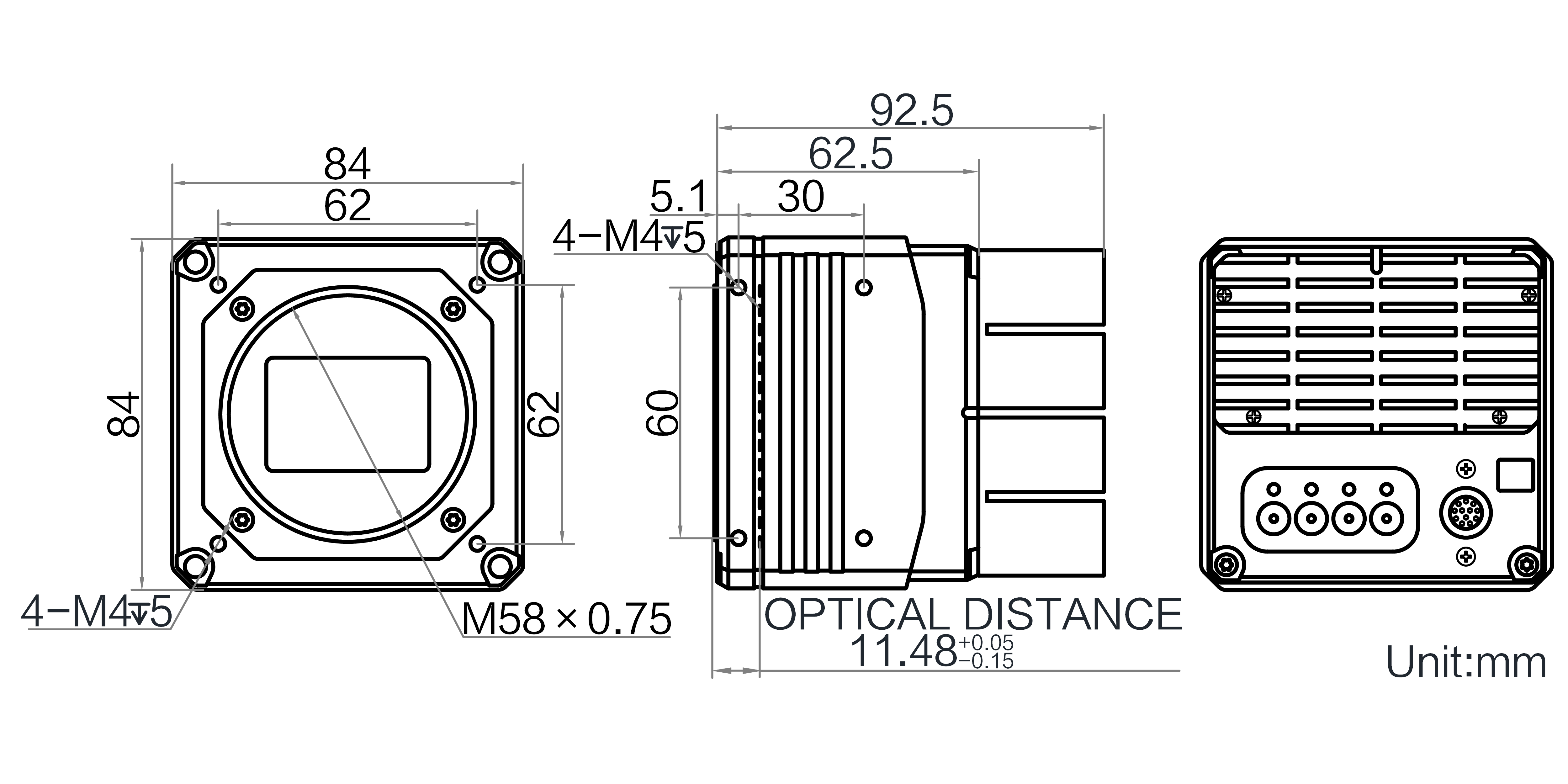 | 结构 | 镜头接口 | M58*0.75,法兰后焦11.48 mm |