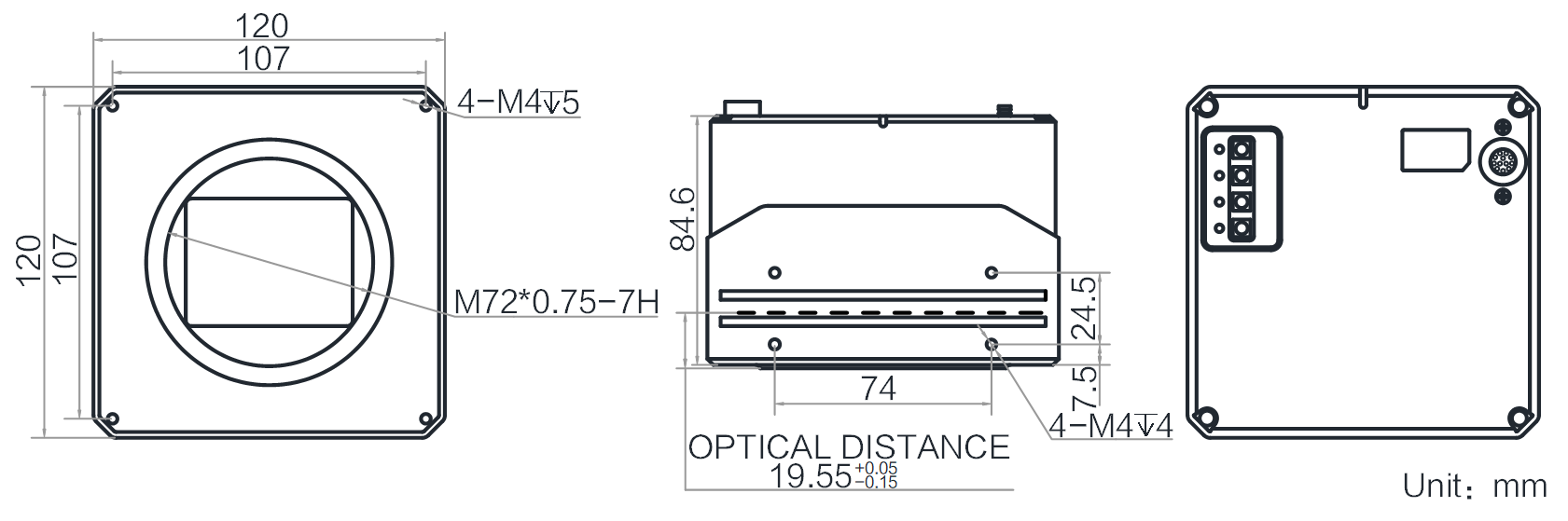 | 结构 | 镜头接口 | M72*0.75,法兰后焦19.55 mm |
