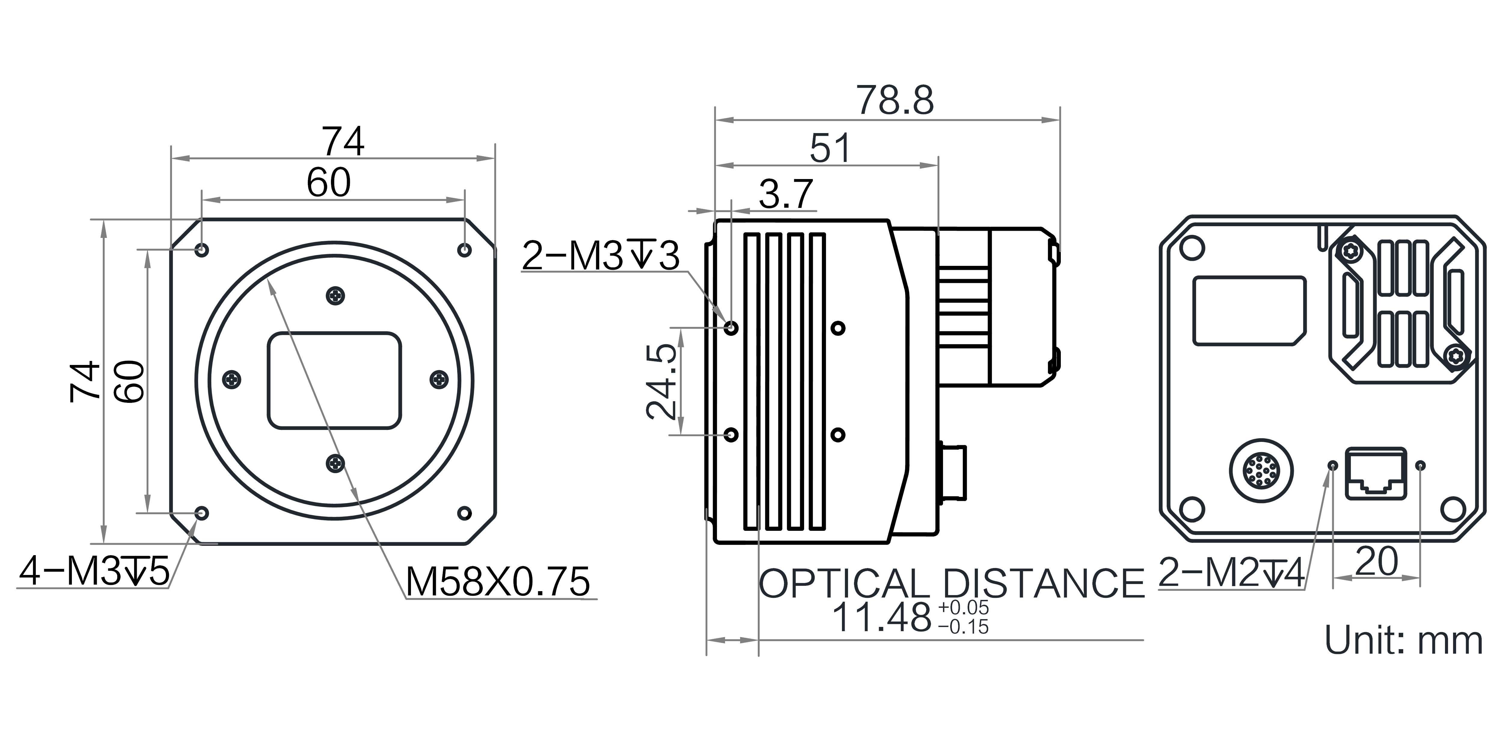 | 结构 | 镜头接口 | M58*0.75,法兰后焦11.48 mm |