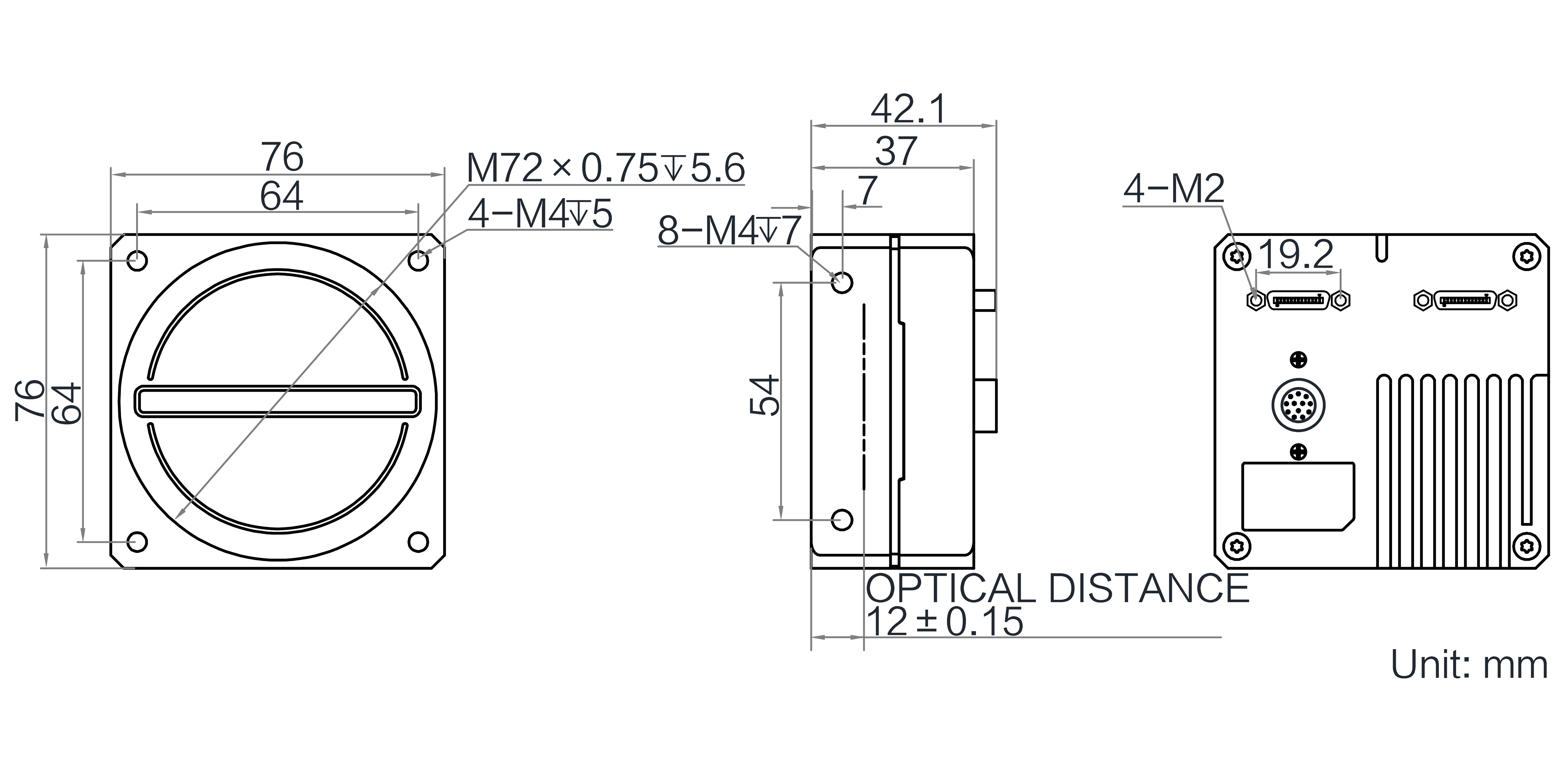 | 结构 | 镜头接口 | M72*0.75,法兰后焦12 mm;可通过转接环转接至F口镜头 |